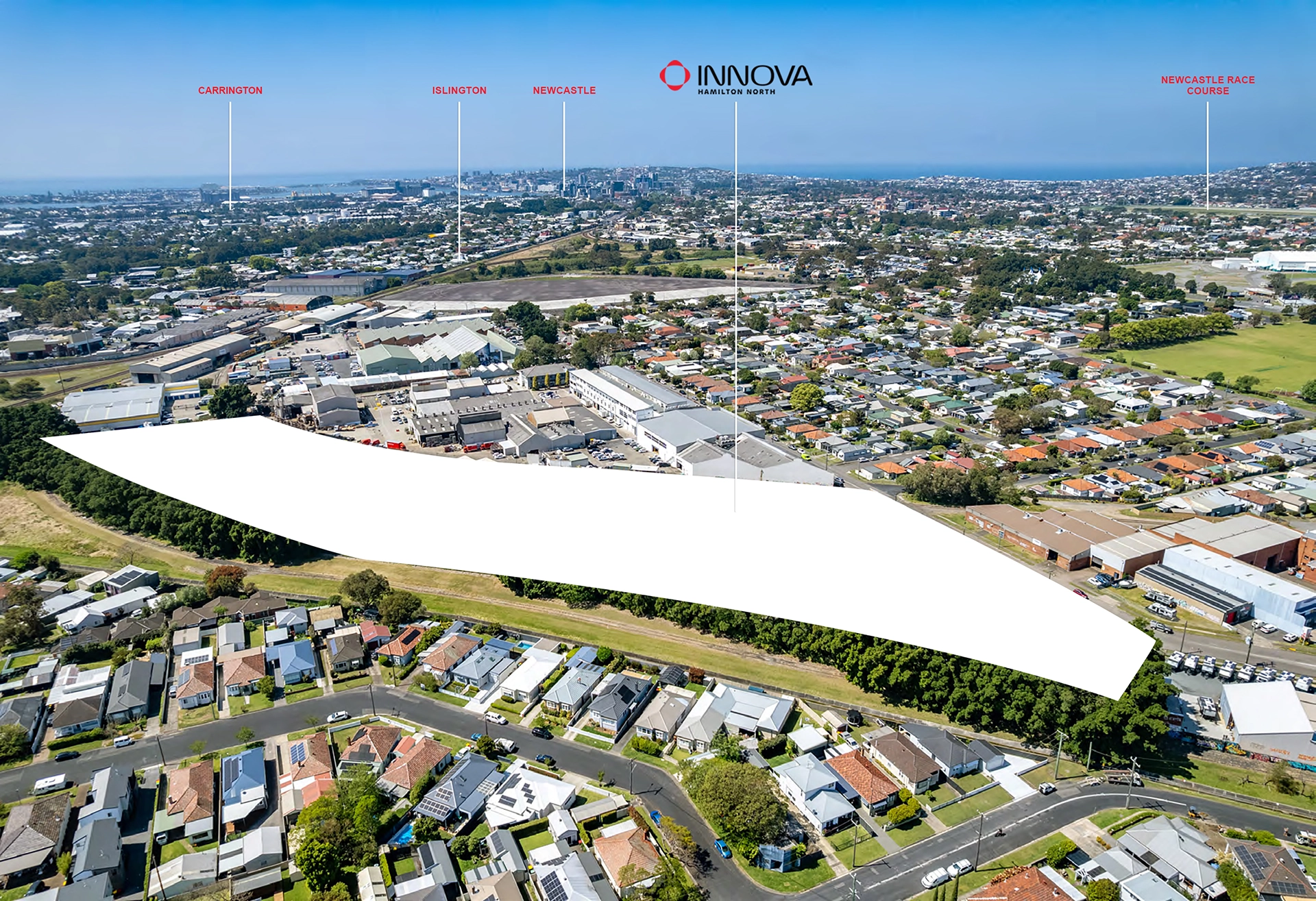 Building on the success of the INNOVA portfolio, Metropolis Development Group presents INNOVA Hamilton North — a landmark inner-city industrial precinct within the Broadmeadow–Hamilton North area. Spanning approximately four hectares, the site is planned as a staged industrial and business park redevelopment, offering high-quality, flexible spaces designed to support existing income today and unlock long-term growth, aligned with Newcastle City Council’s Broadmeadow Place Strategy.